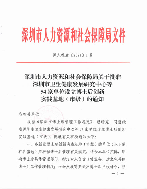 近日,深圳市人力资源和社会保障局发布“关于批准深圳市卫生健康发展研究中心等54家单位设立博士后创新实践基地(市级)”的通知(深人社发〔2021〕1号)。经深圳人力资源和社会保障局研究批准,深圳市远行科技股份有限公司等54家单位设立博士后创新实践基地。