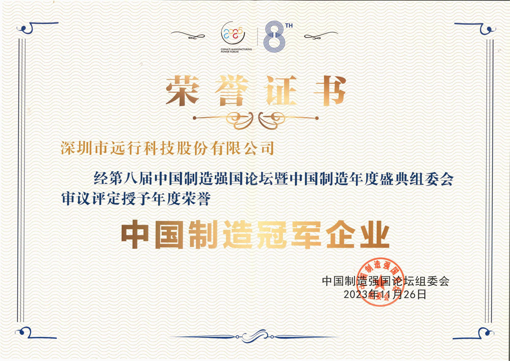 2023中国制造年度盛典中,远行科技喜获“中国制造冠军企业”即“隐形冠军”荣誉。这是对远行科技先进技术、综合实力的高度肯定,充分展现了远行科技在制造领域的实践成果。